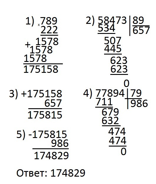 Все действия в столбик ниже ( в прекреплённой картинке) :