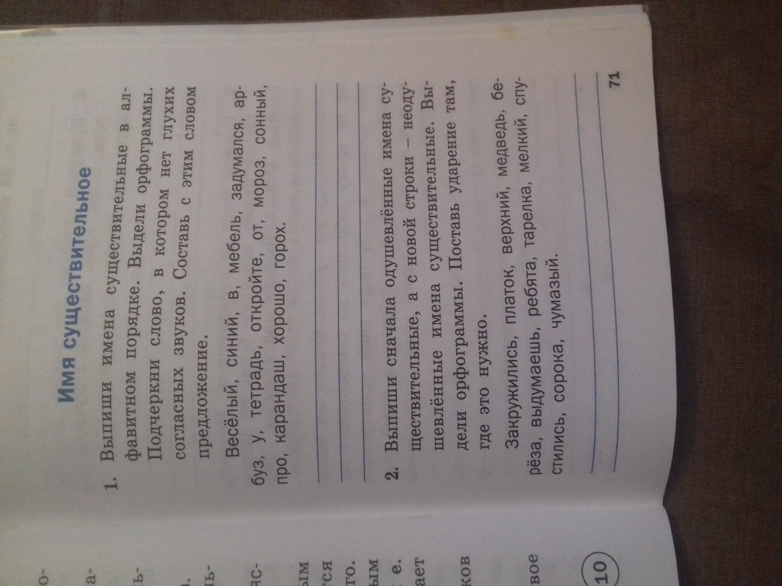 Выпиши имена существительные в алфавитном порядке Выдели орфограммы подчеркни слово в котором нет глухих согласных звуков Составьте с этим словом предложения