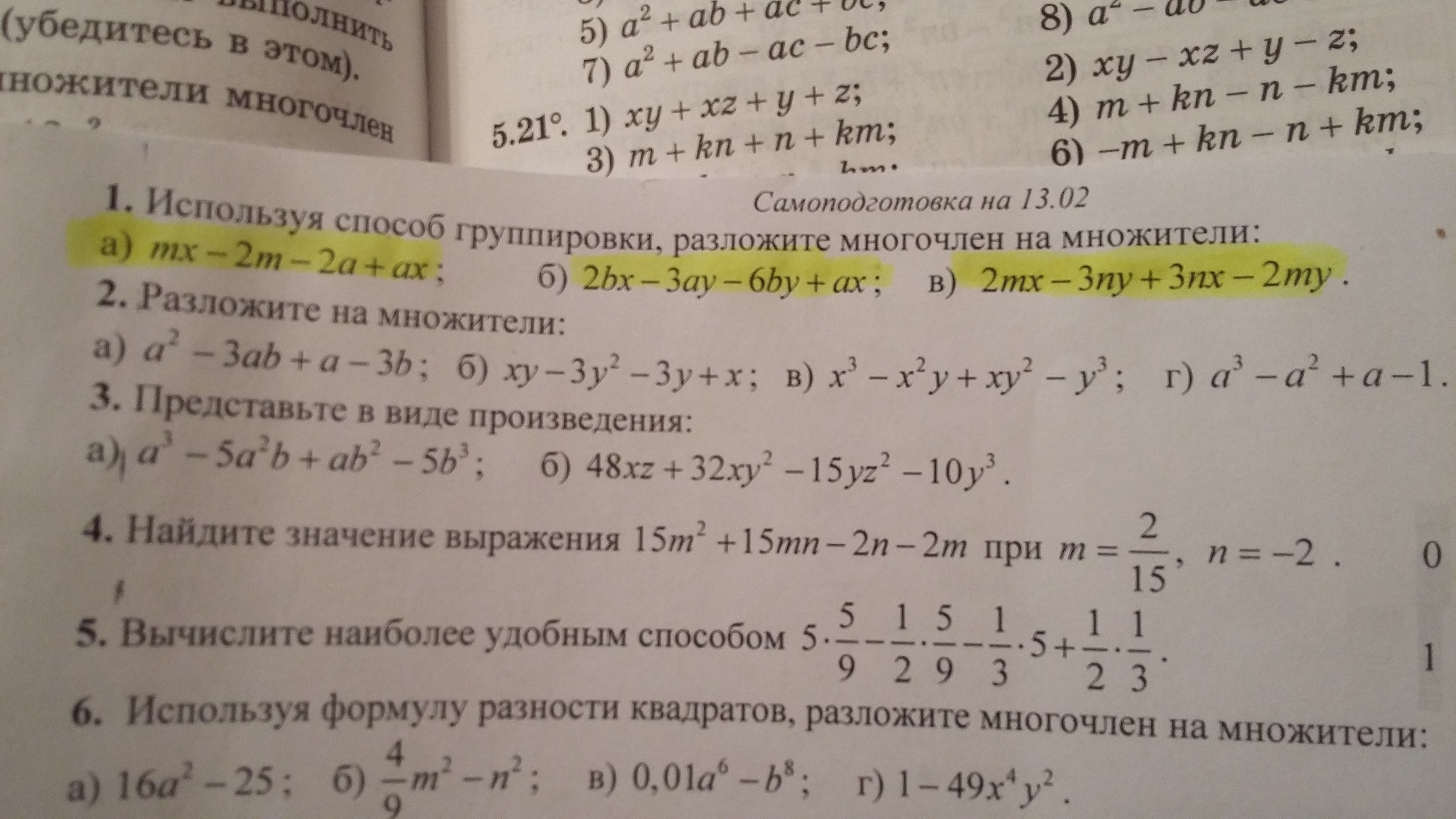 используя способ группировки разложите многочлен на множители 1х 3 номера пожалуйста даю 70 баллов