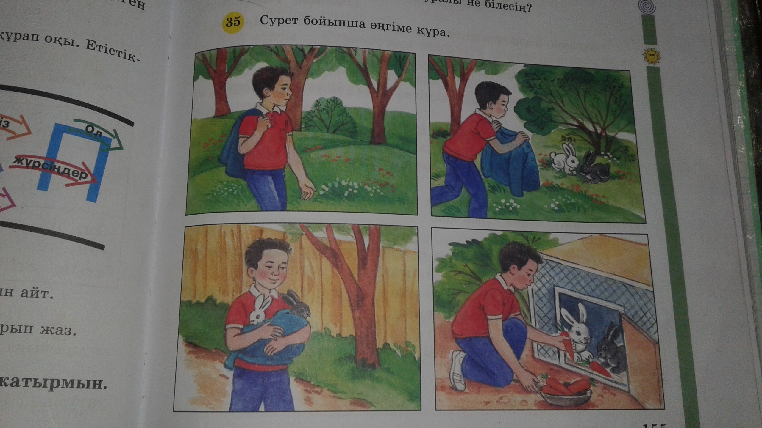 Мальчик гулял возле опушки леса .Вдруг он увидел двух красивых ,но очень испуганных кроликов.Он решил им помочь и взял их домой .Посадил их в клеточку ,покормил и стал каждый день заботится о своих новых питомцах .