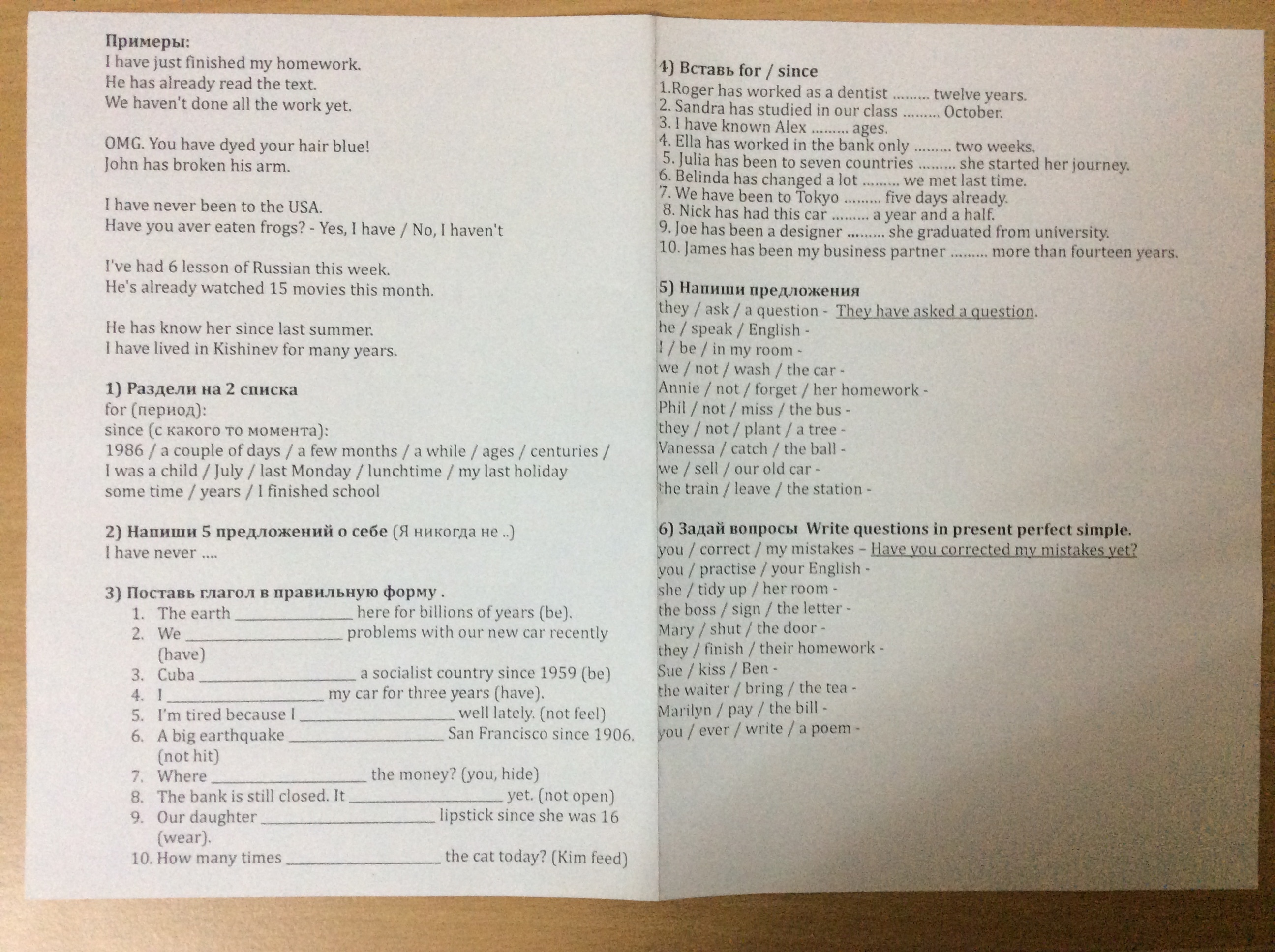 3 ) 1 has been 2 have had 3 has been 4 have had 5 haven't felt 6 hasn't hit 7 have you hidden 8 hasn't opened 9 has wore 10 have fed