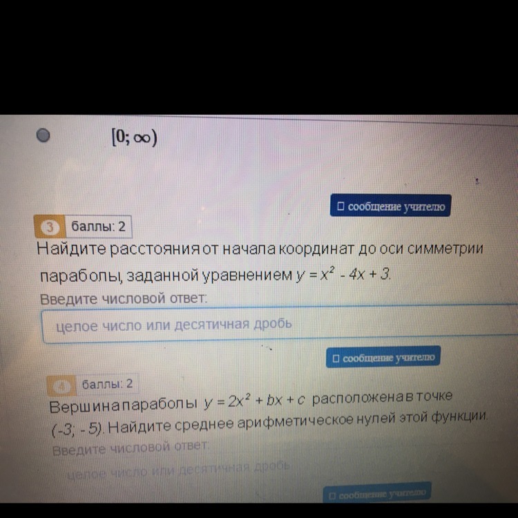 Найдите расстояние от начала координат до оси симметрии параболы, заданной уравнение у= x^2-4x+3