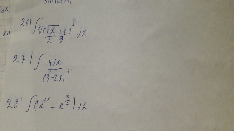 ∫∛(5x/2+1/3)²dx=3/5*∛(5x/2+1/3)^5 *2/5+C=6/25*∛(5x/2+1/3)^5+C