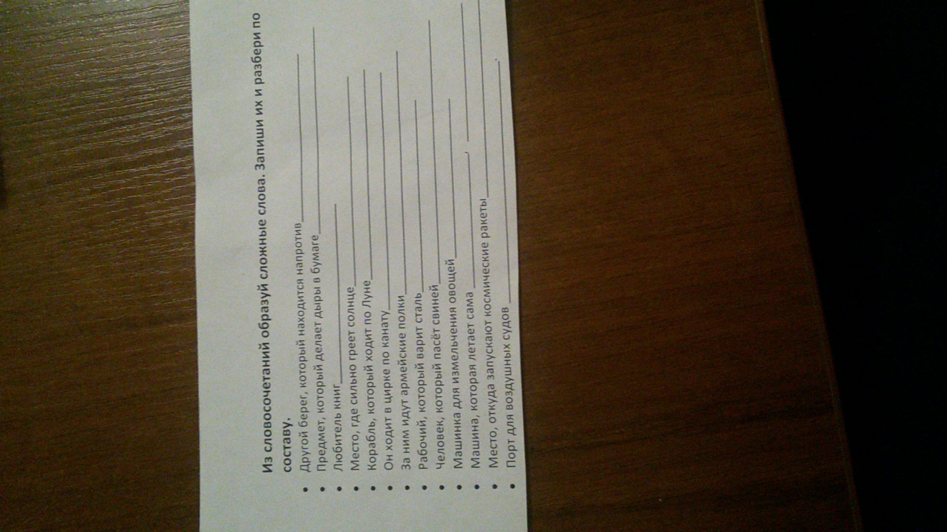 Из словосочетаний образуй сложные слова.Запиши их и разбери по составу.,,,, Другой берегу ,который находится напротив .