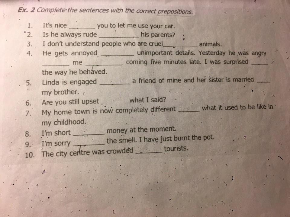 2:4 He gets annoyed about unimportant details. Yesterday he was angry with me for coming …. surprised by the way ….