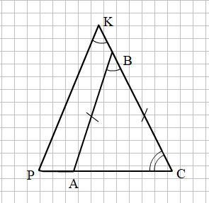 На продолжениях сторон AC и BC треугольника ABC (AB=BC) за точки A и B отметили соответственно точки P и K так, что PK параллельны AB. Докажите, что треугольник KPC-равнобедренный
