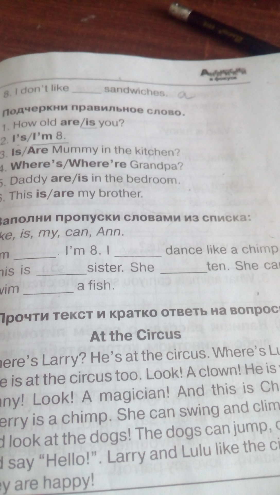 How old are you.2 Is 8 3 Is Mummy in the kitchen 4 Wheres Grandpa 5Daddy is the bedroom 6This is my brother