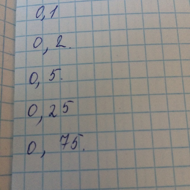 1/10, 2/10=1/5, 5/10=1/2, 25/100= 1/4, 75/100=3/4