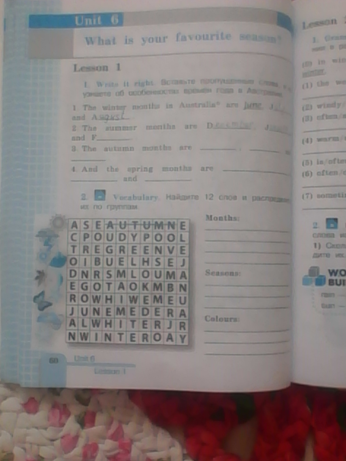Плохо видно, но я попробую... 1.Winter months in Australia are June, July and August.