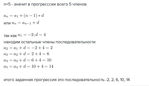 итого заданная прогрессия это последовательность -2, 2, 6, 10, 14
