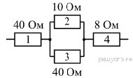 чему равно общее сопротивление электрической цепи если R1=40 Oм, R2=10 Ом, R3=40 Ом, R4=8 Ом