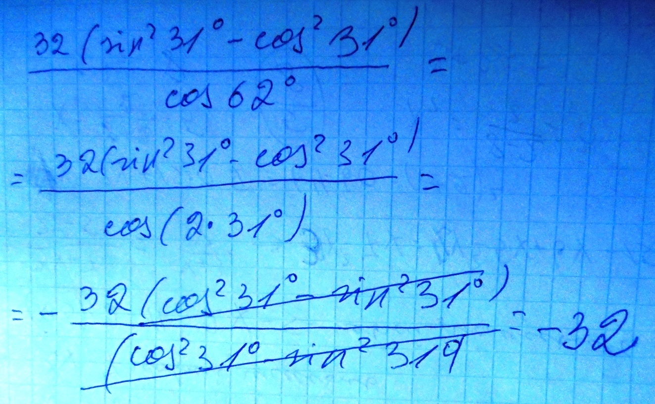 32(sin²31-cos²31)/cos62 = -32 cos 62 / cos 62 = -32