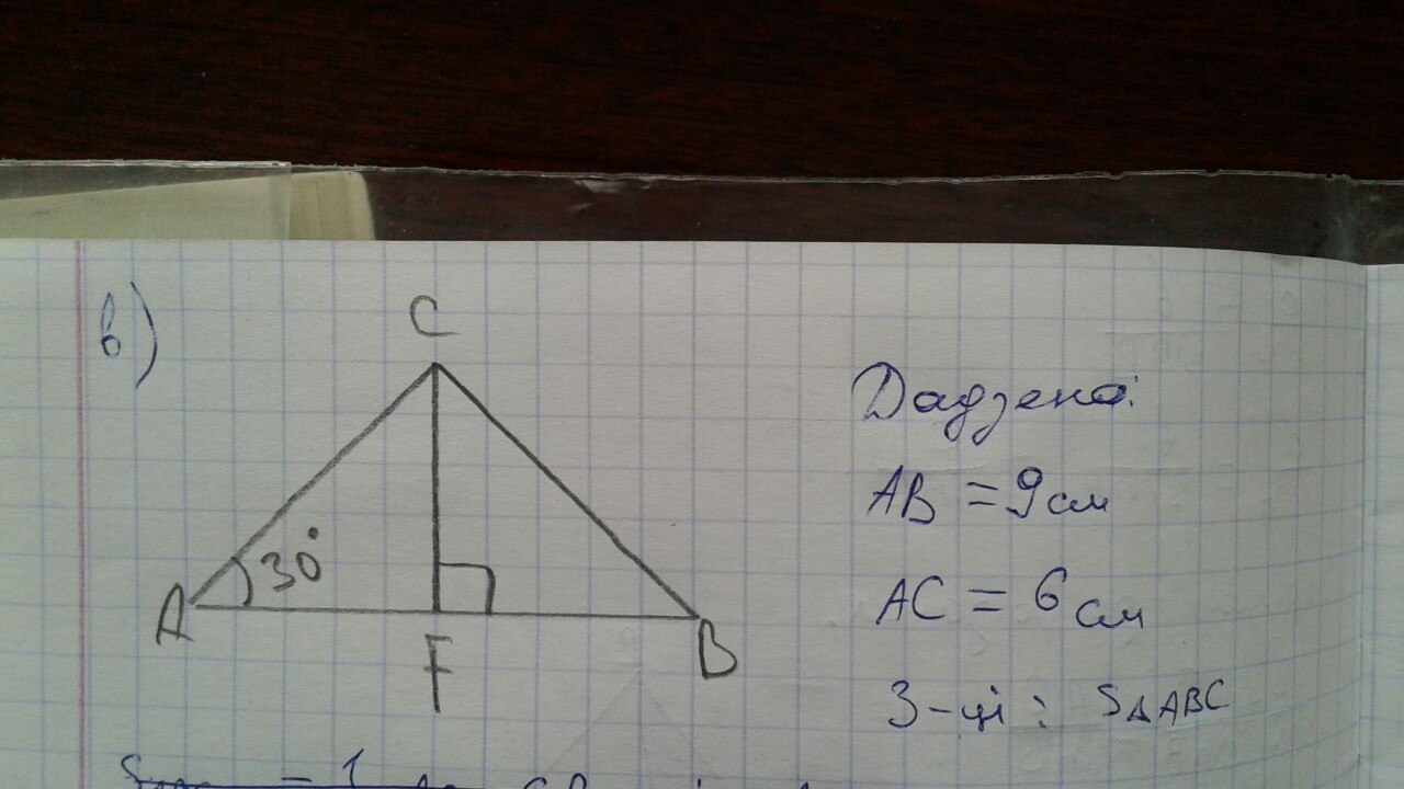 S=AB*CF:2=9*3:2=27:2=13,5 см²