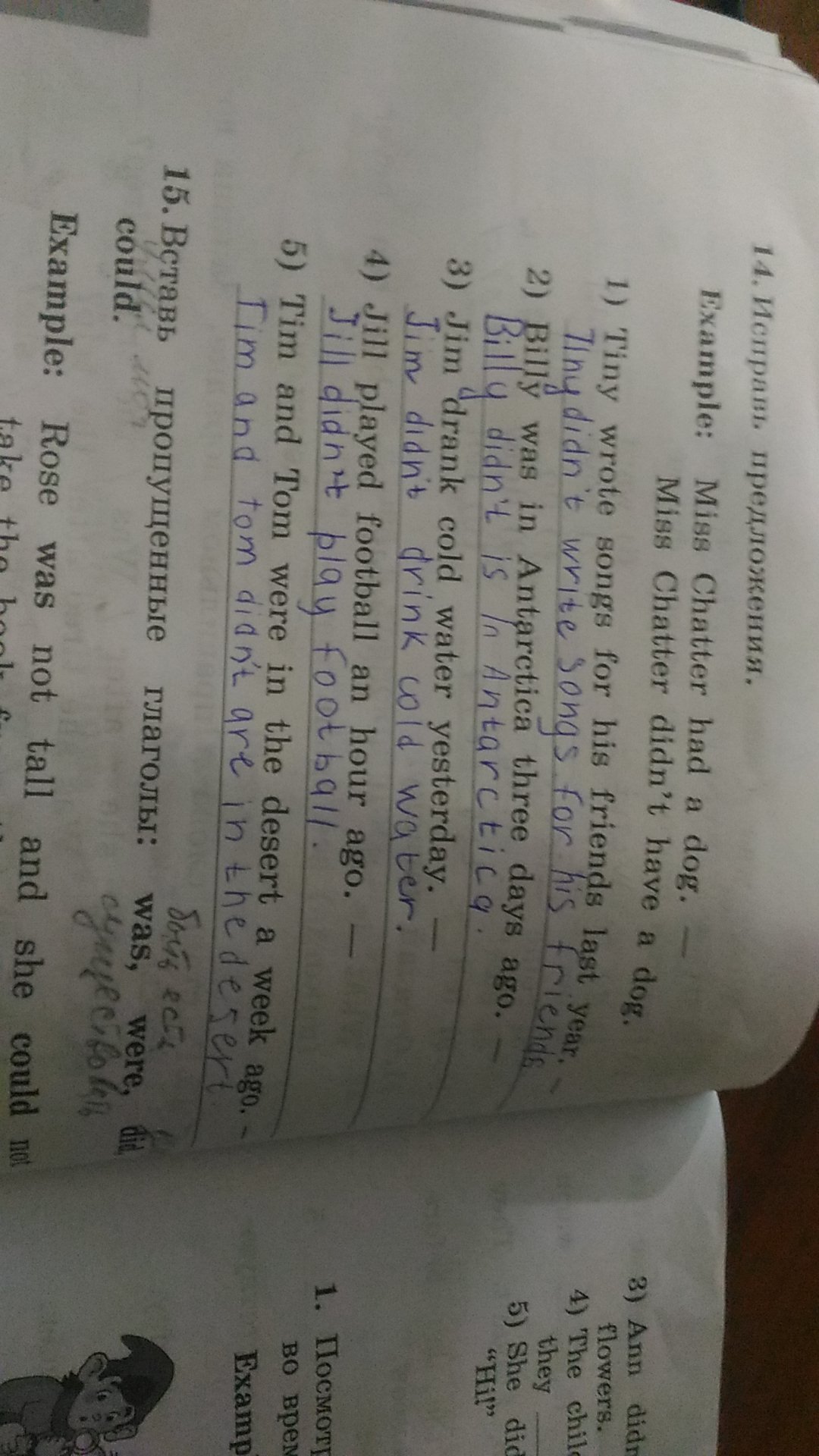 2 и 5 не правельно слово быть оно самостоятельное там будет вместо didn't is- wasn't. И вместо didn't are-weren't