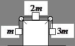 На гладкой горизонтальной поверхности находится куб, на котором укреплены два блока. Через блоки перекинута нить с грузами массами m, 2m, 3m (m=0,1 кг). Какой горизонтальной силой надо действовать на куб, чтобы он покоился? Трение между всеми поверхностями отсутствует. Ответ в ньютонах округлить до трех значащих цифр по правилам округления и вписать в предложенное поле. g=9,81 м/с2.