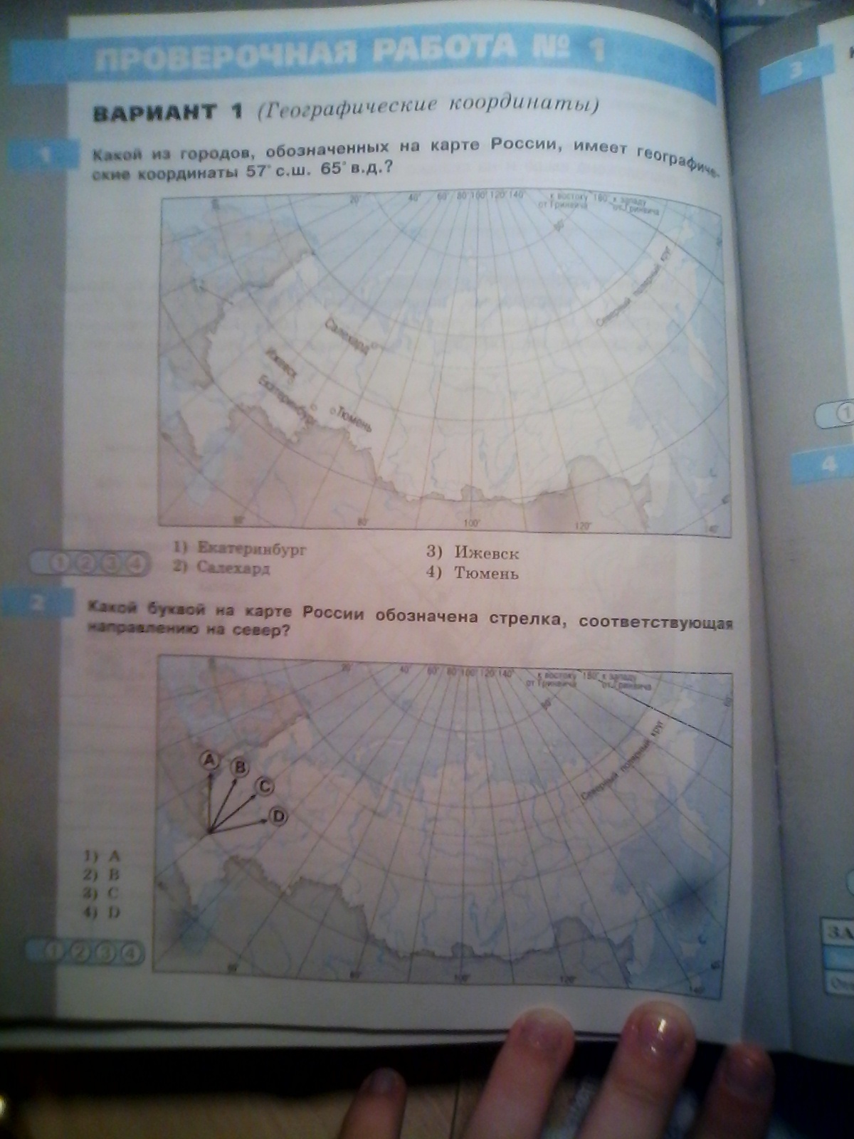 1).Тюмень 2).А 3).А 4).40 с.ш 60 в.д