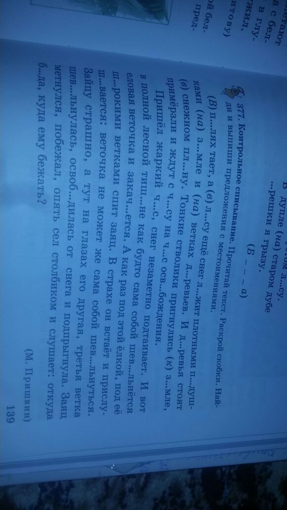 Пришёл жаркий час, снег незаметно подтаивает, и вот в полной лесной тишине как будто сама собой шевельнётся еловая веточка и закачается. А как раз под этой ёлкой, прикрытой её широкими ветками, спит заяц. В страхе он встаёт и прислушивается: веточка не может же сама собой шевельнуться. Зайцу страшно, а тут на глазах его другая, третья ветка шевельнулась и, освобожденная от снега, подпрыгнула. Заяц метнулся, побежал, опять сел столбиком и слушает: откуда беда, куда ему бежать?