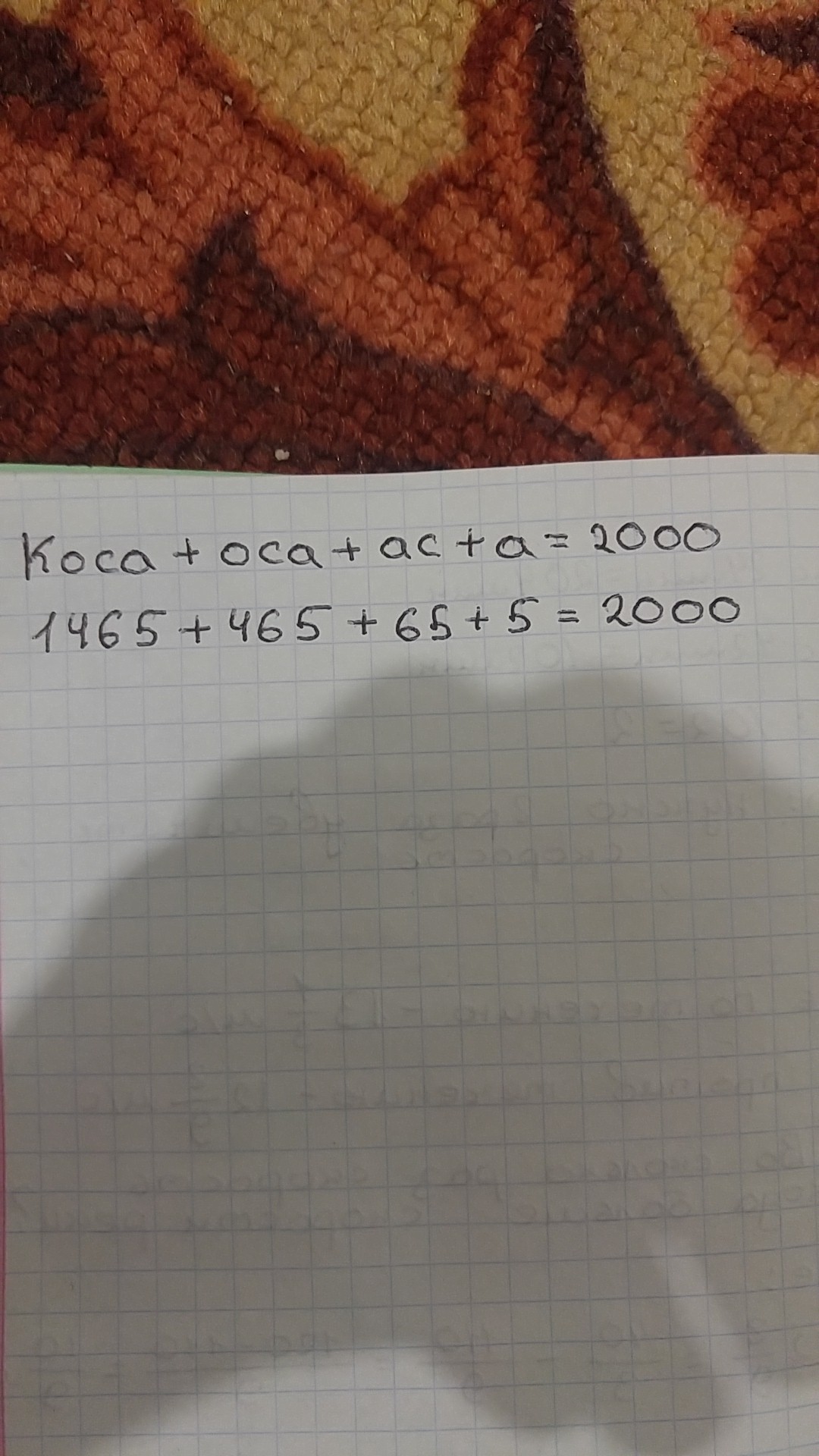 Коса+оса+са+а=2000 заменил буквы цифрами, одинаковая буква одинаковая цифра, неодинаковая буква разные цифры