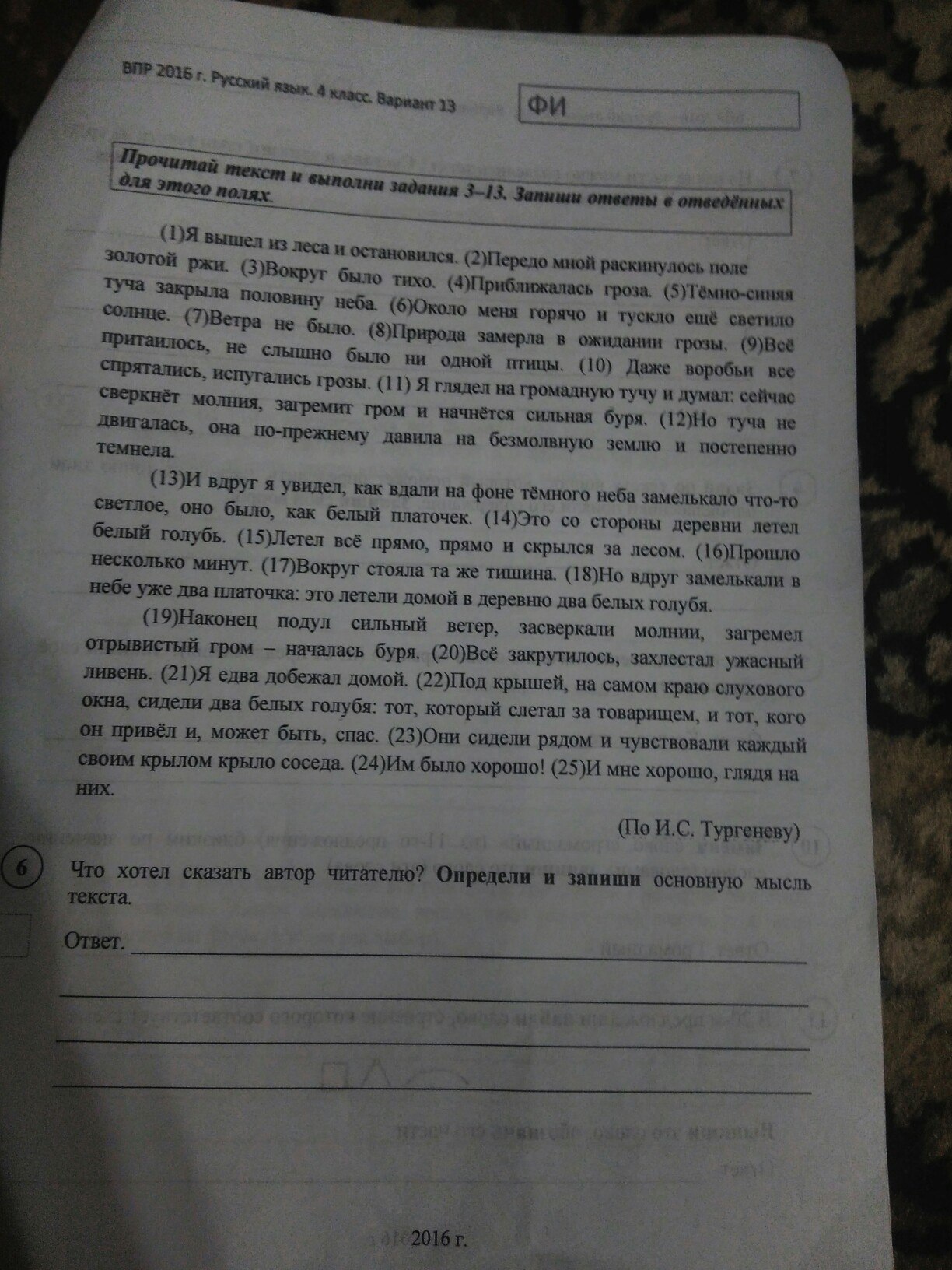 автор показывает на фоне грозового неба два "белых платочка" - это голуби, которые спасаются от ненастья. Тургенев восхищается мужеством птиц, их дружбой "Они сидели рядом и чувствовали каждый своим крылом крыло соседа. Им было хорошо"