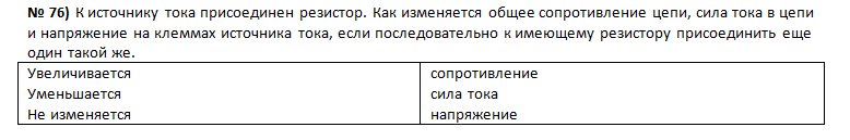 К источнику тока присоединен резистор. Как изменяется общее сопротивление цепи, сила тока в цепи и напряжение на клеммах источника тока, если последовательно к имеющему резистору присоединить еще один такой же.