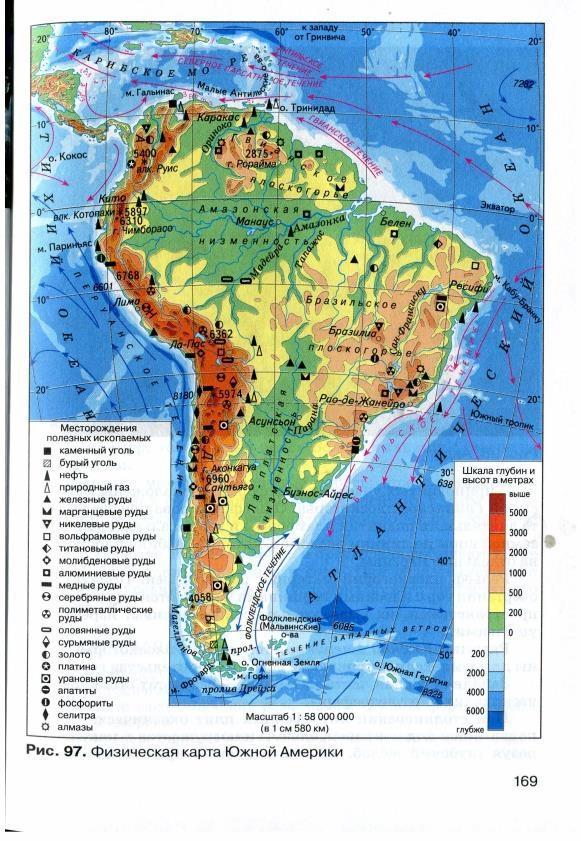 3 Каковы наибольшая и преобладающая высоты.Наибольшая высота гора Аконкагуа-6962 м.Преобладающие высоты 600 м.