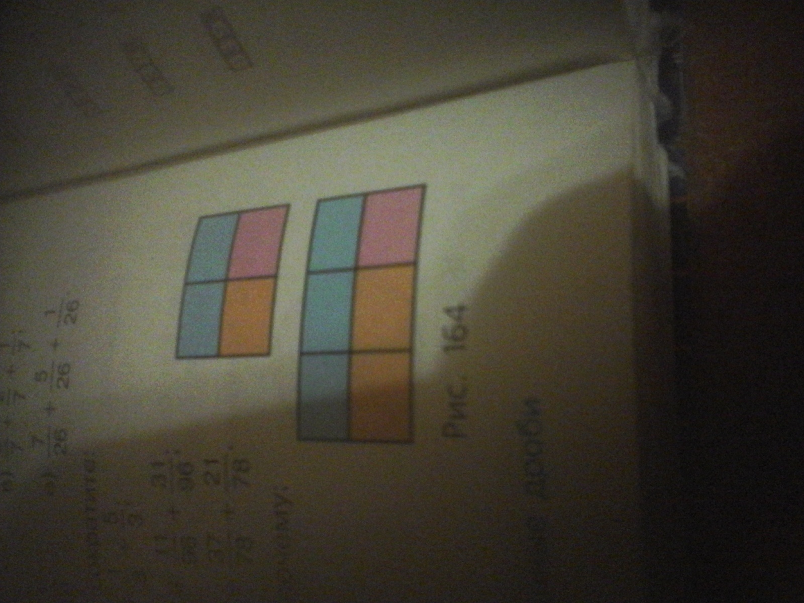 Рассмотрим рисунок . На нем фигура разделена на 4 части . Две из них( т.е. половина ) закрашены голубым цветов и составляют 2 части из 4 или 2/4 части фигуры . 2/4 можно сократить на 2 и получаем 1/2, можем записать :