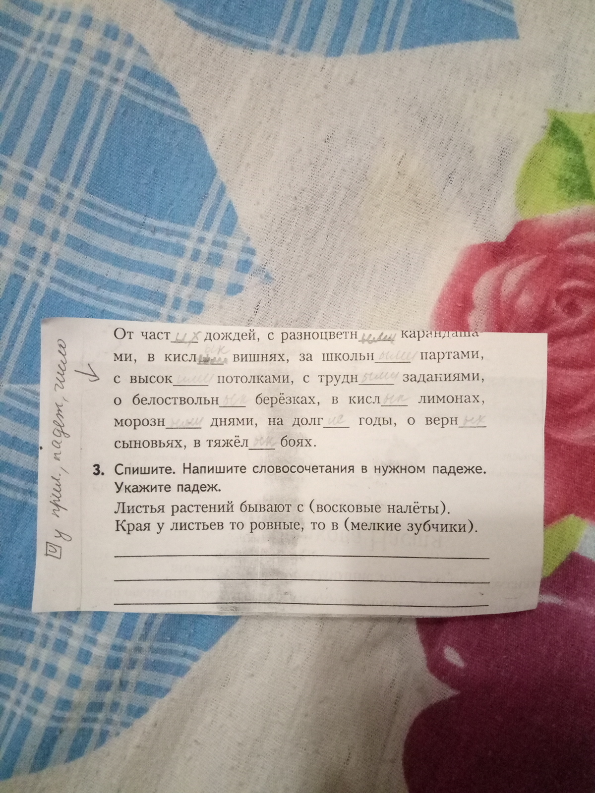 Листья растений бывают с восковыми ( Т.п., мн.ч.) налётами ( творительный падеж множественное число)