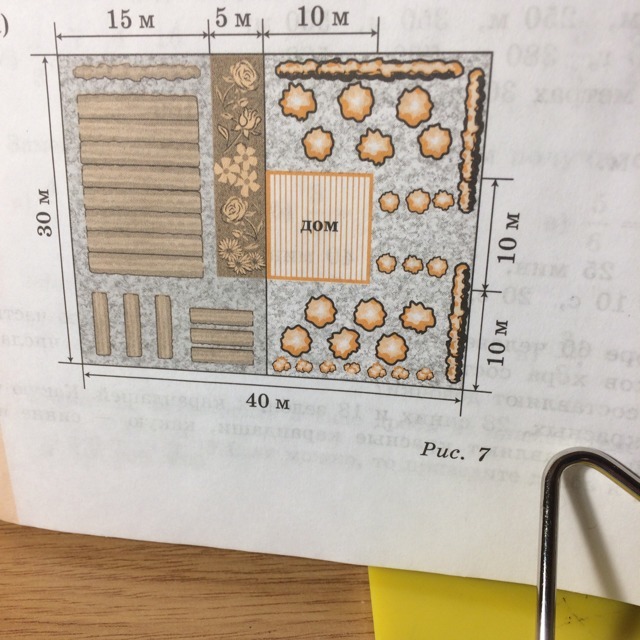 На рисунке 7,изображён план дачного участка .Какую часть площади участка занимает дом,цветник,сад,огород?