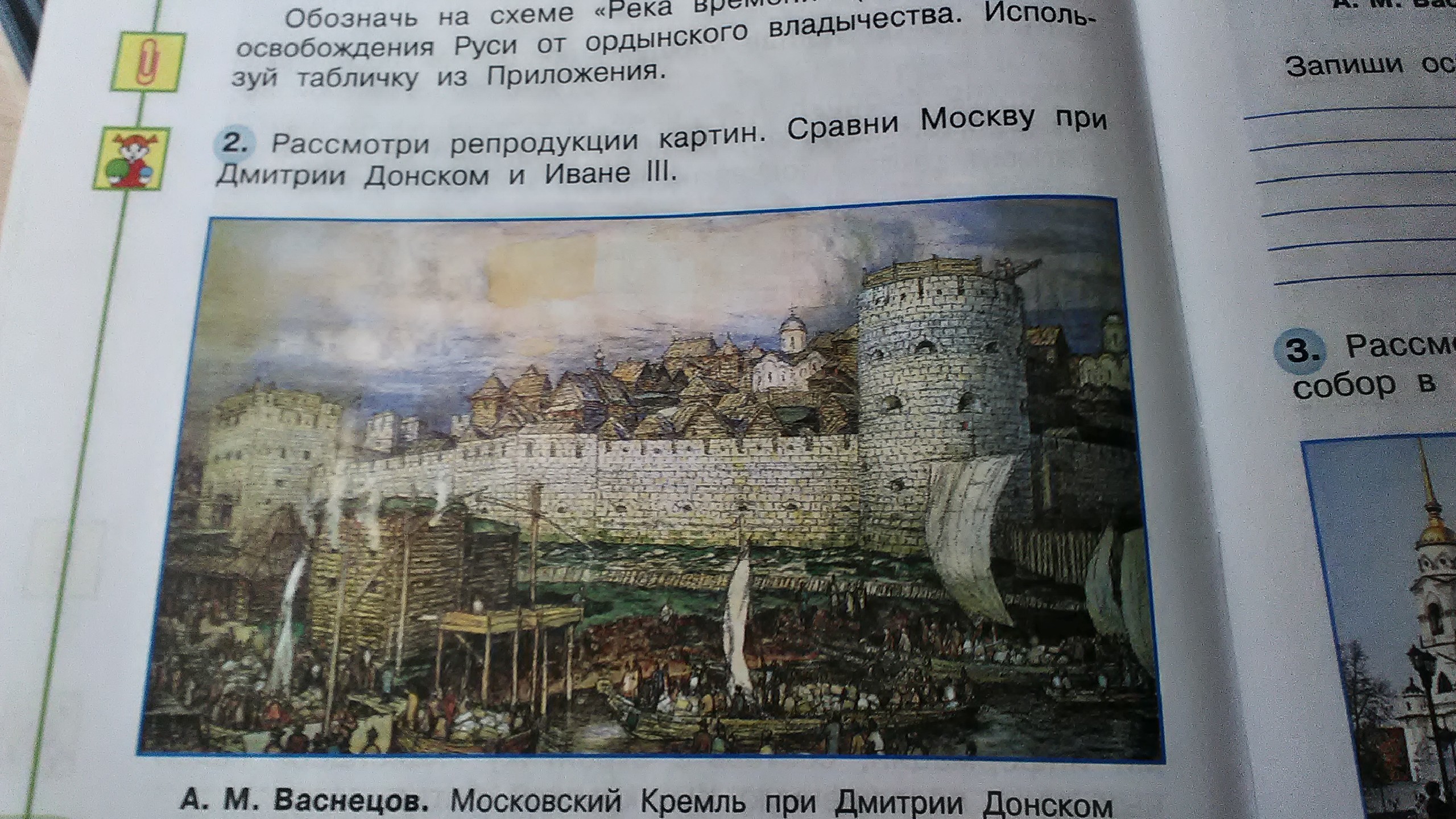 Рассмотрите репродукции картин. Сравните Москву при Дмитрии Донском и Иване 3.