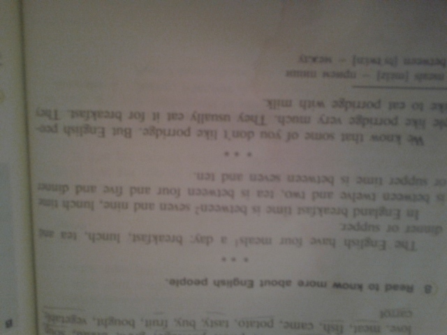 внизу там ещё English people don't eat much bread. They never eat bread with meat or vegetables. But they sometimes eat bread with soup