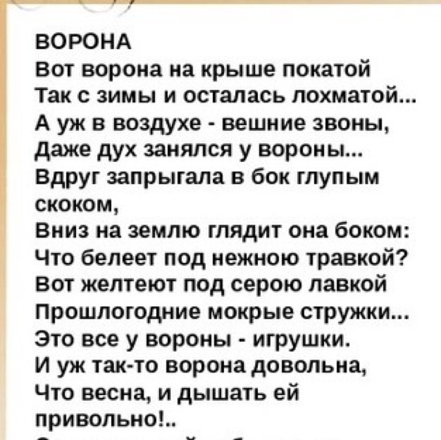 Огромную любовь питал он к животным: собакам, ежам, зайцам. С симпатией относился к насекомым и червям. Столь нежное отношение к братьям нашим меньшим нашло отражение в стихах, написанных для детей. В частности, в произведении «Ворона», вошедшем в раздел «Весна» сборника «Круглый год». В нем описывается поведение птицы, с радостью встречающей весну — время обновления, перерождения. Она обращает внимание на всякие мелочи: на стружку, желтеющую под серой лавкой, на что-то белеющее под нежною травкой. Снег сошел, и теперь вороне прекрасно видны все потенциальные игрушки — просто рай для любопытной птицы. Ей даже дышаться весной стало привольнее! В стихотворении «Ворона» Блок предстает перед читателями как чуткий и внимательный наблюдатель, умеющий подмечать особенности поведения птиц. Более того — поэт придумывает характер для своей героини, описывает ее переживания. К «Вороне» близко другое стихотворение для детей — «Зайчик». Они разнятся по созданному настроению, но сопоставимы по трогательному отношению к представителям фауны.