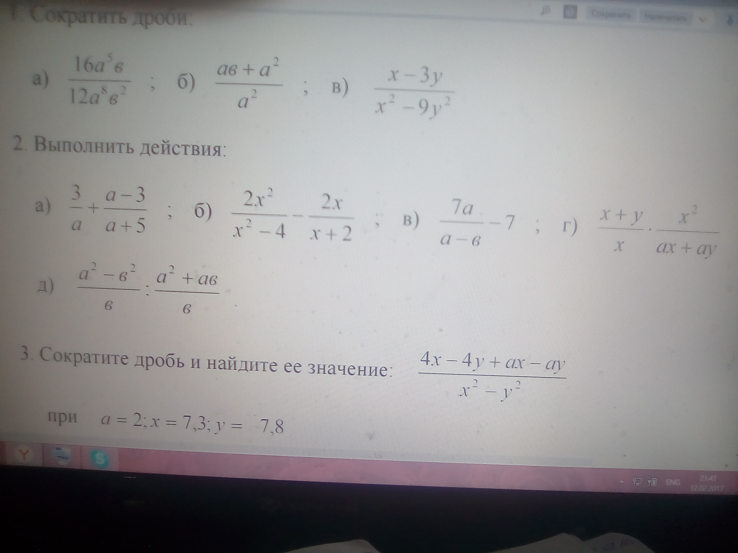 г)выносишь у 2 дроби общий знаменатель получается так-а(х+у),дальше сокращаешь.