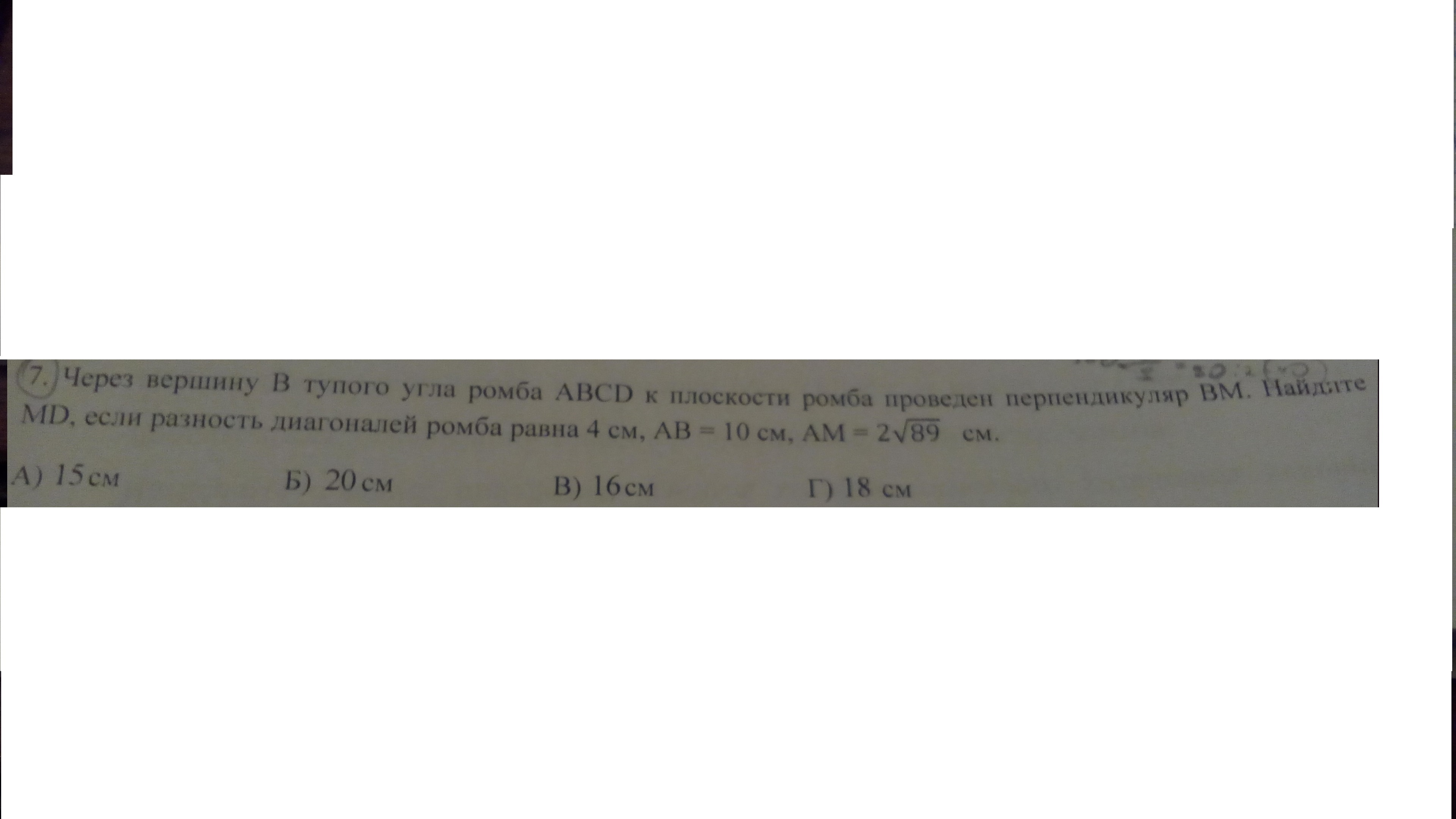 МД²=ВД²+ВМ²= 12²+16²= 144+256= 400