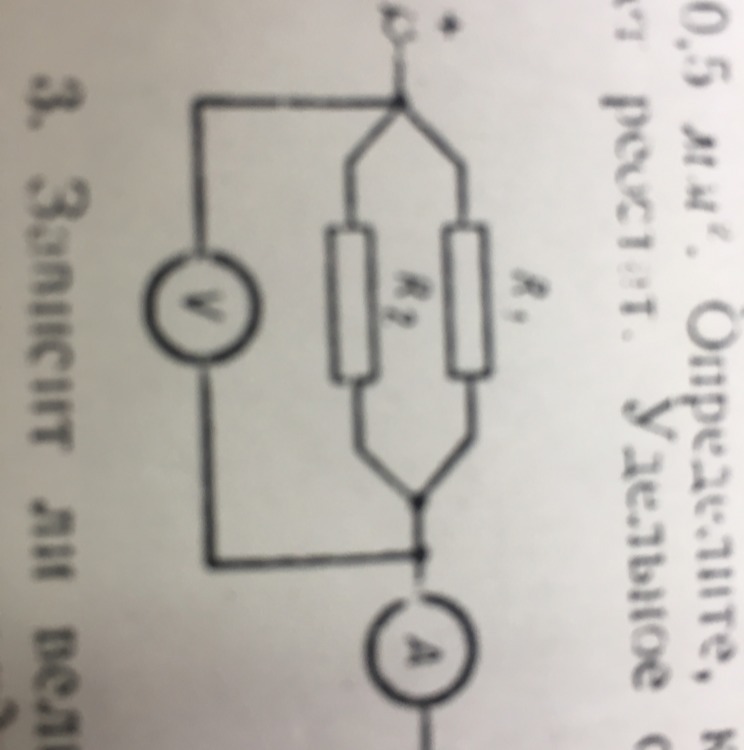 На рисунке изображена схема электрической цепи состоящая из двух параллельно соединенных сопротивлений ( R1=20 ом и R2 =30 ом) Определите показания амперметра, если вольтметр показывает 120 вольт.