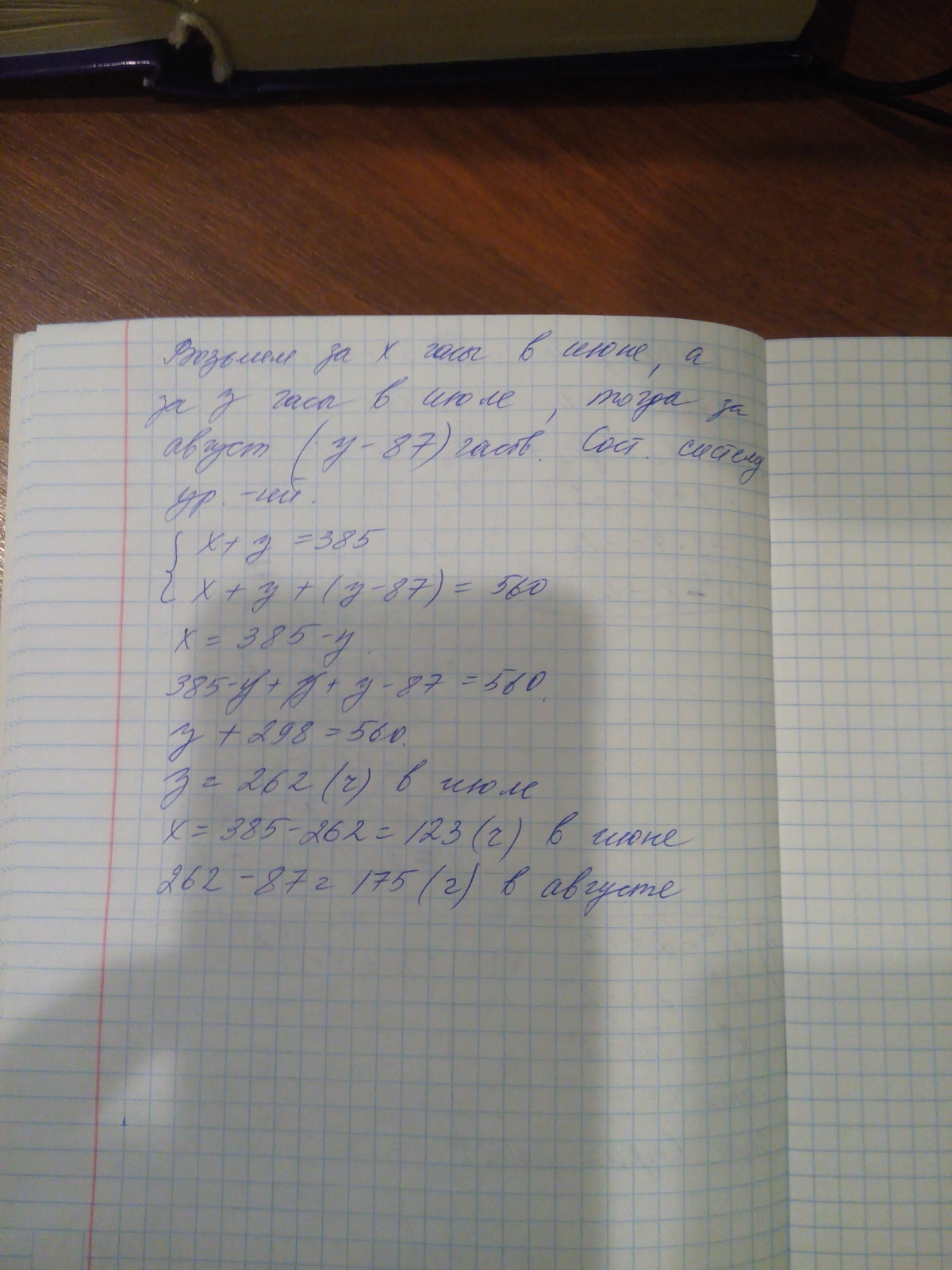 175+87=262(ч) в июле