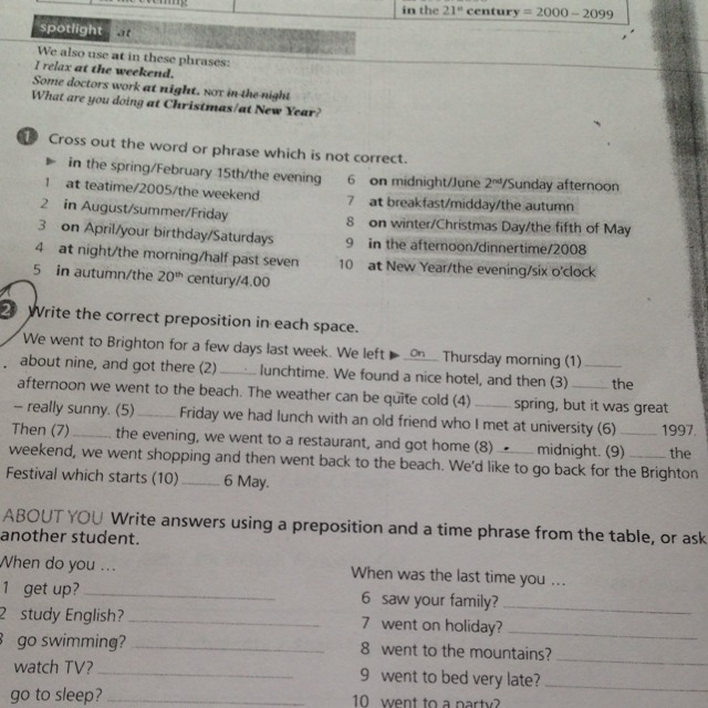 1 at 2 at 3 in 4 in 5 on 6 in 7 in 8 at 9 at 10 on
