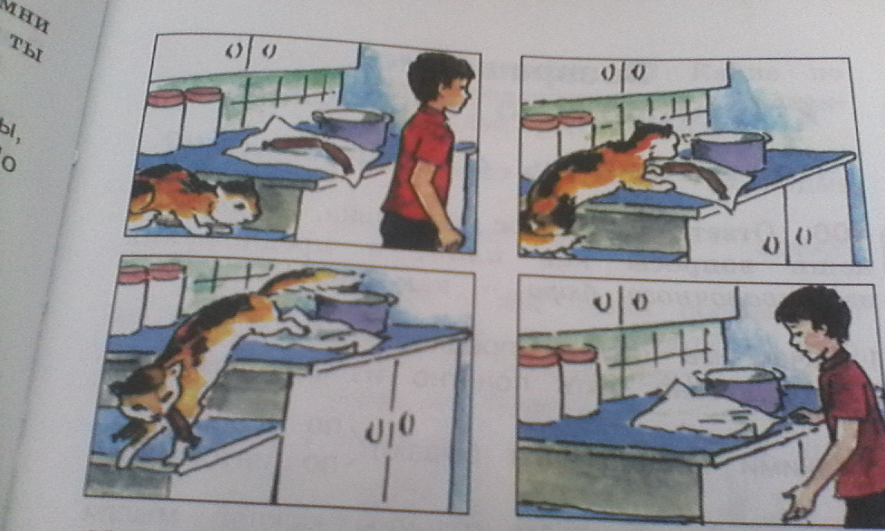 Рассмотрим картинки и представь:все что нарисрванно,ты наблюдаешь.Что расскажешь другим?Какими секретами писателей воспользуешься?Прочитай план.Он тебе подойдёт? 1)Будущий завтрак.2)Почему и кошке не полакомиться?3)Завтрак не состоялся.
