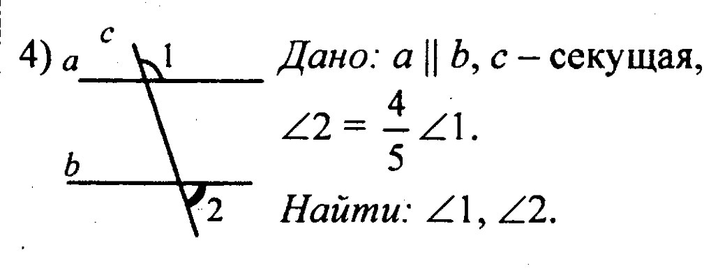 Пусть ∠2=х, тогда ∠1=4/5х, их сумма=180°, Отсюда уравнение