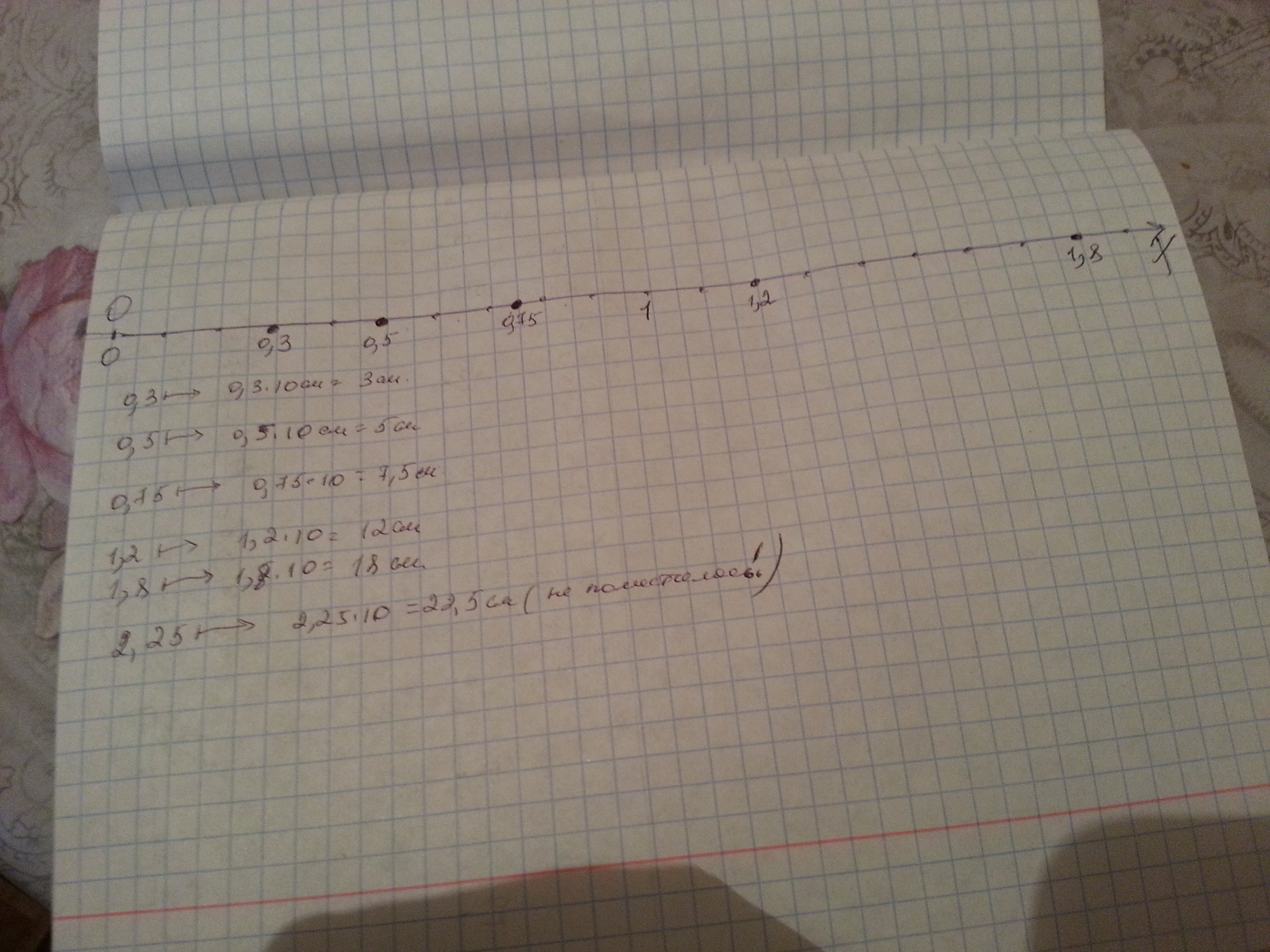 Начертите в тетради координатный луч с единичным отрезком 10 сантиметров.