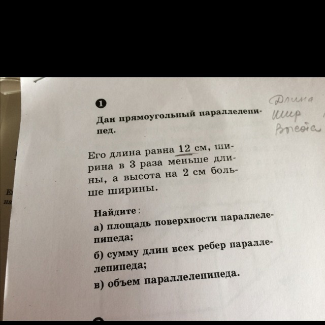 ширина ? в 3 см.< ,значит 12/3=4см решение :а) S=2(12*4+12*6+4*6)=288