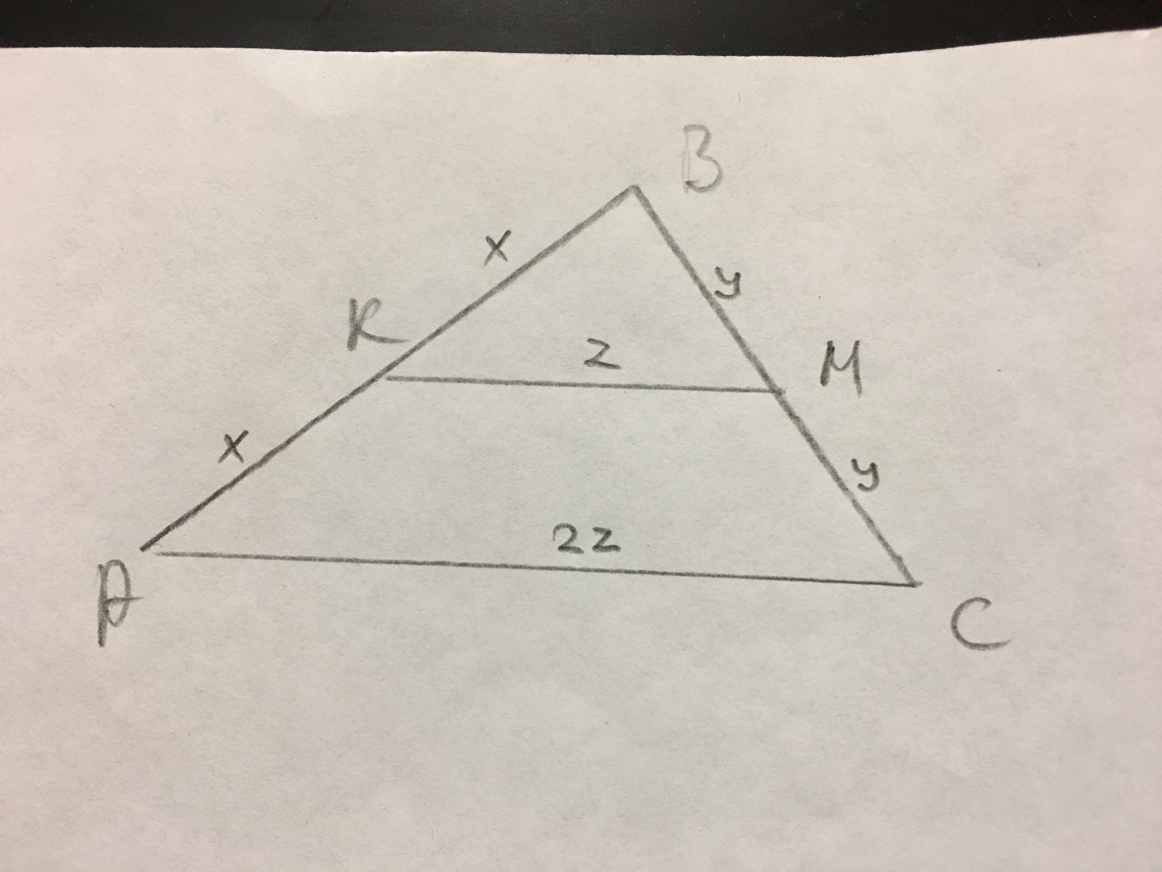 1)Точки C, H, P - середины сторон ΔABK. Найдите стороны ΔABK, если стороны ΔCHP равны соответственно 12;9;8.