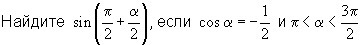 Найдите sin(п/2+a/2) , если cosa=-1/2 и п<a<3π/2