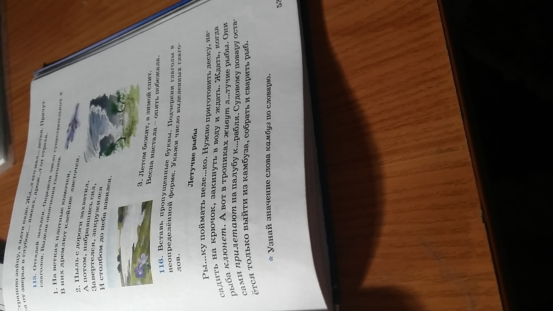 Рыбку поймать нелегко. Нужно приготовить леску, насадить на крючок, закинуть в воду и ждать. Ждать, когда рыба клюнет. А вот в тропиках живут летучие рыбы. Они сами прилетают на палубу корабля. Судовому повару остаётся только выйти из камбуза, собрать и сварить рыб.