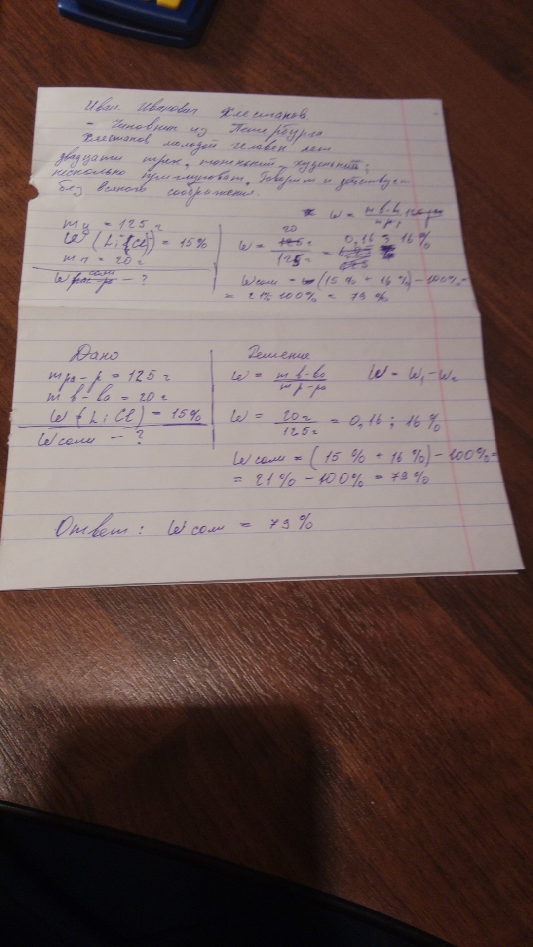 К 125 г 15% раствора хлорида лития прилили 20 г воды. Какой стала массовая доля соли в растворе?
