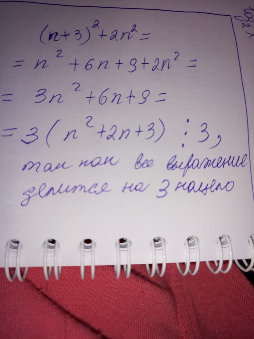 Докажите,что при всех целых значениях n значение выражения (n+3)в квадрате + 2n в квадрате делится нацело на 3