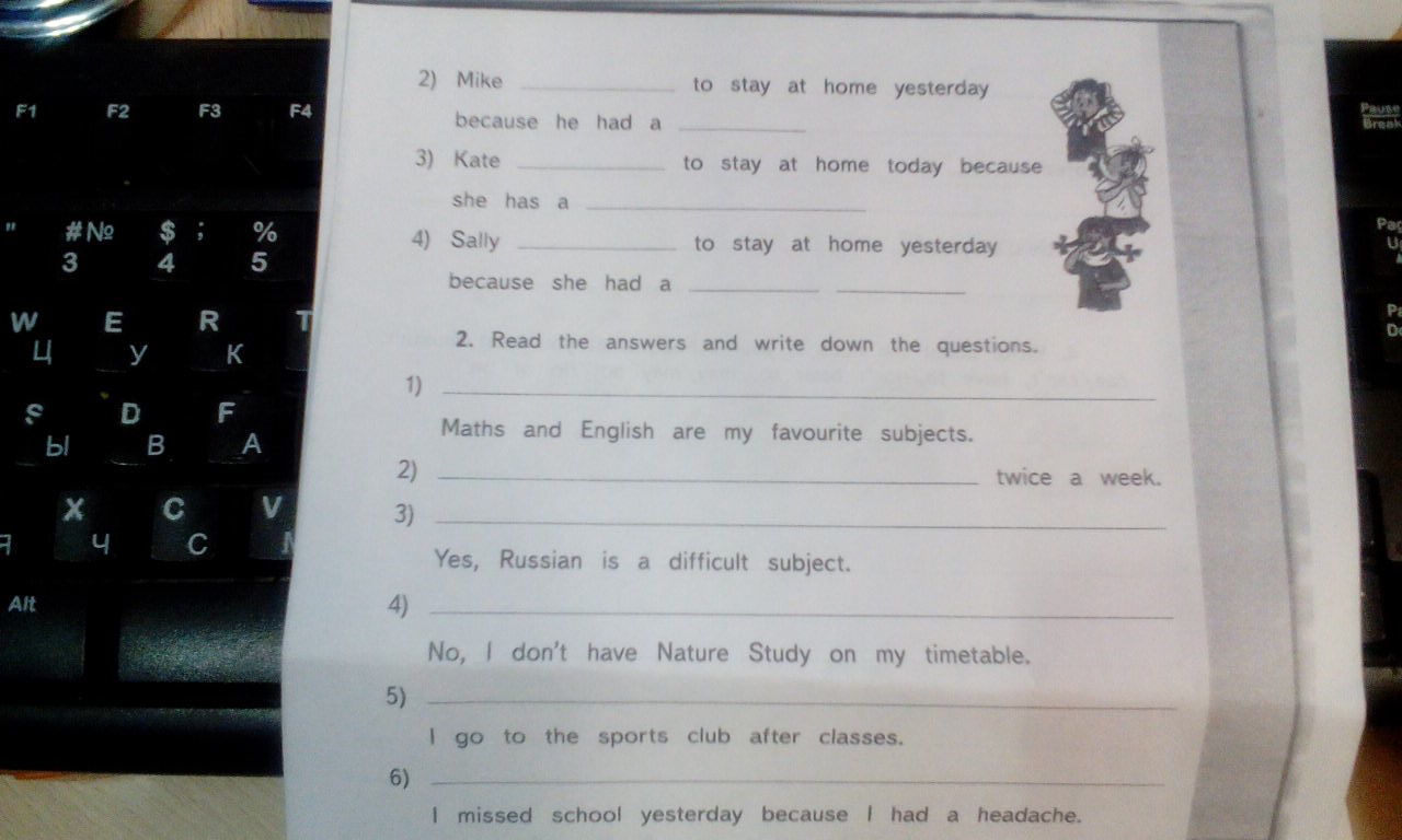 Помогите пожалуйста по английскому.Задание №2 (там нужно составить вопросы, прочитав ответы) и задание №3 нужно посмотреть на фото и написать что будет с детьми. Заранее огромное спасибо