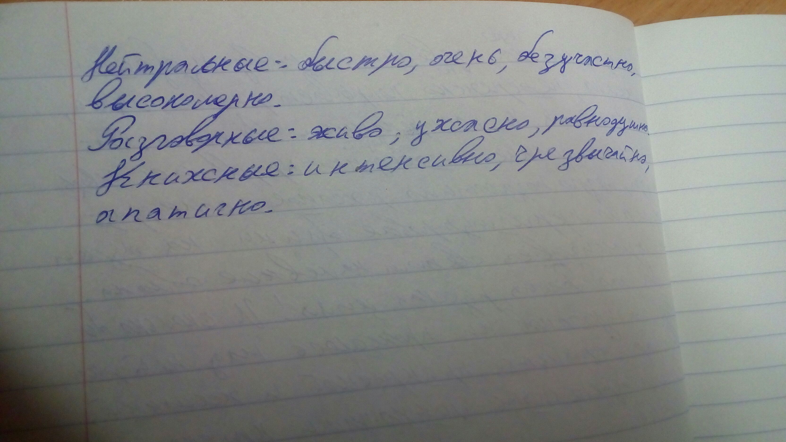 распределите наречия по графам таблицы в зависимости от их стилистической принадлежности.