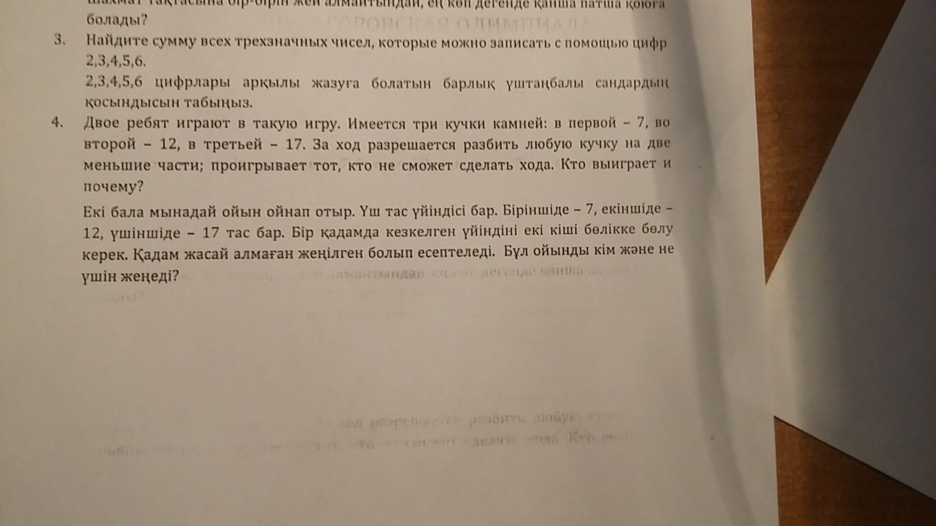 двое ребят играют в такую игру Имеется три кучки камней в первой 7 во второй 12 во второй в третьей 17 за ход разрешается разбить любую кучку на 2 меньше части проигрывает тот кто не сможет сделать хода Кто выиграет и почему