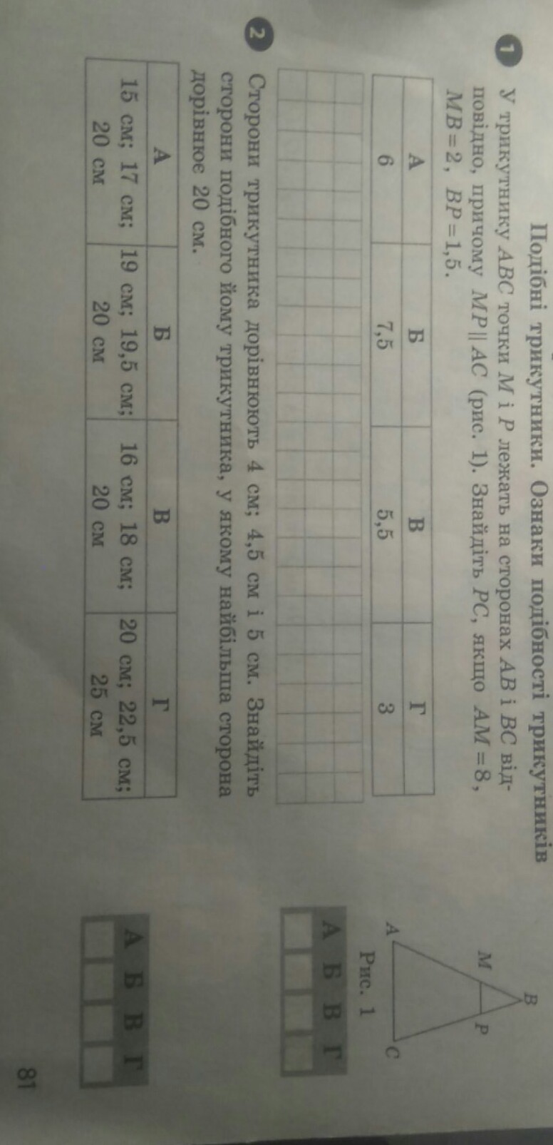 1) Трикутники АВС та МВР подібні за 2-ома сторонами і кутом між ними. Отже: