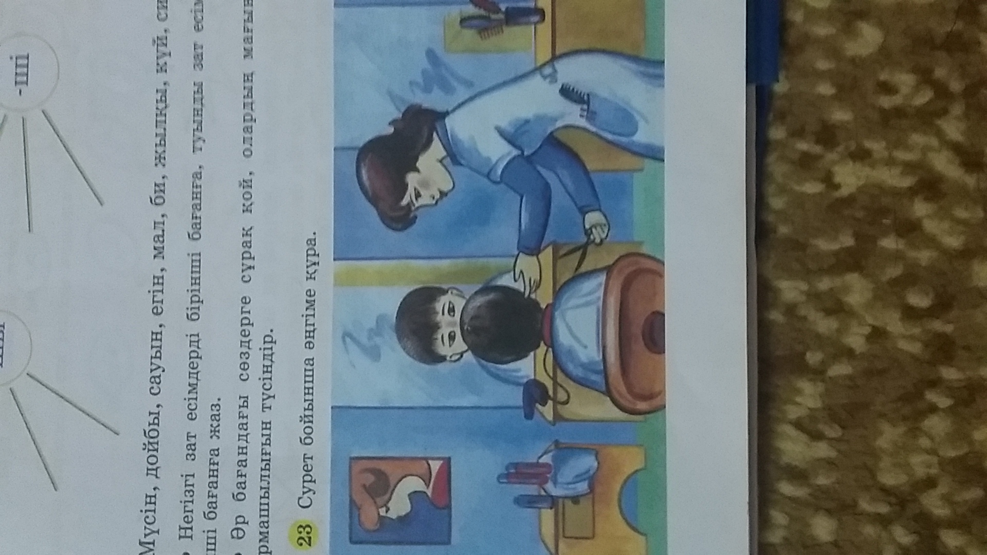 Баланың есімі Алишер. Оның шашы осіп кеткен сон ол шашын қыйуға келді. Шаштаразда жұмыс жасайтың апайдың есімі Ару. Ару мен Алишер тез тіл табысып кетті. Ару Алишерге шашын жақсы қиып берді. Алишер Аруга алгғысын білдірді.
